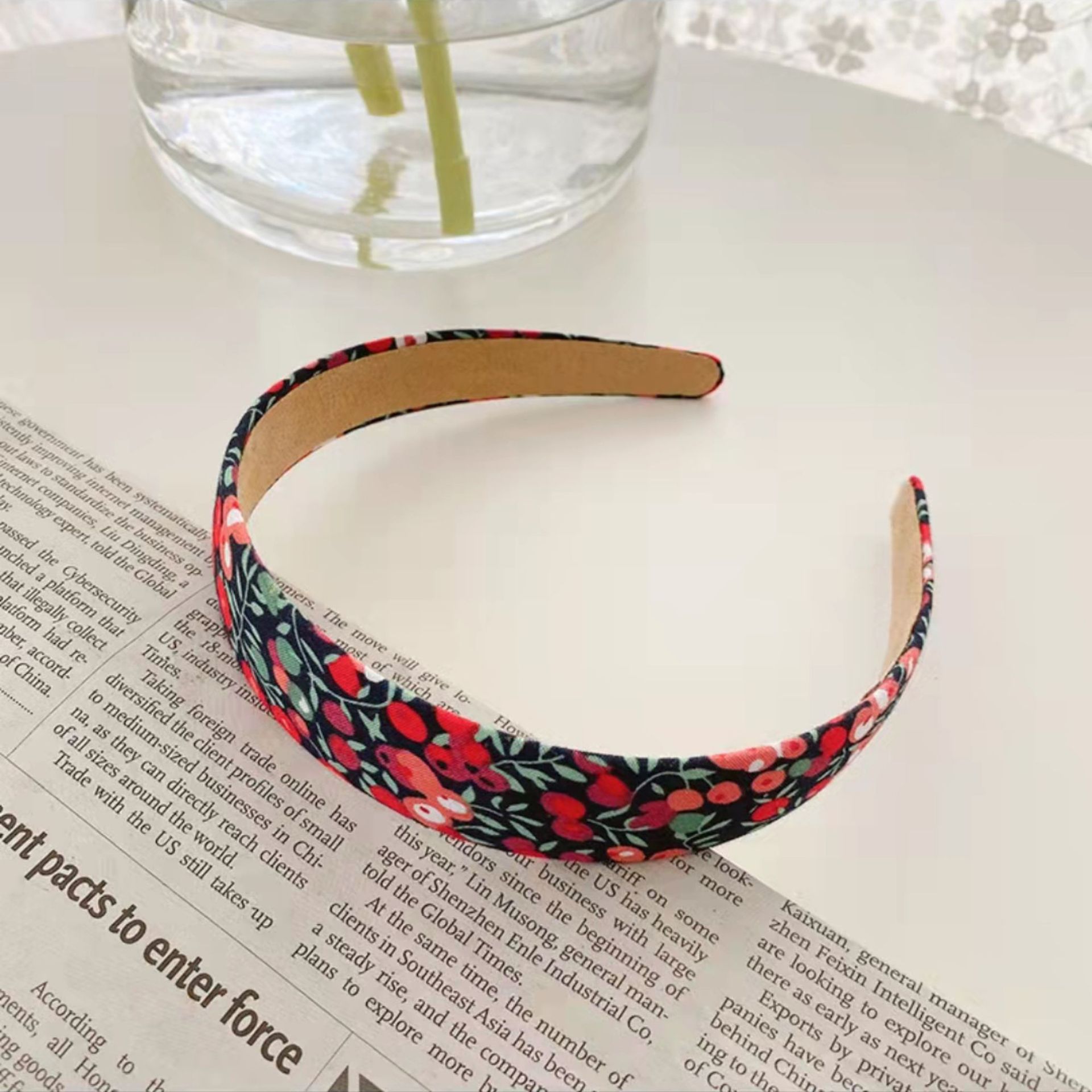 Breites Haarband im französischen Sommerstil, vielseitig einsetzbar, mit Blumenmuster, zum Binden von glattem Haar, ideal für Outdoor-Aktivitäten und als Haarspange.
