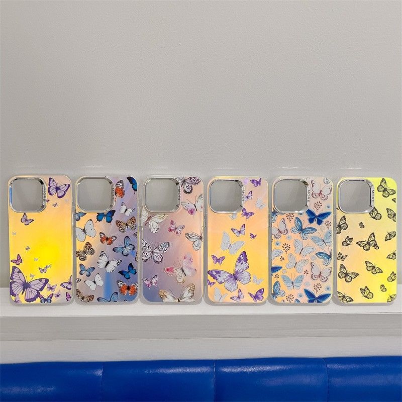 Bunte Laser-Schmetterlingshülle, kompatibel mit iPhone 15, 16 Pro Max, 13P, galvanisiert, S24 Plus, matt