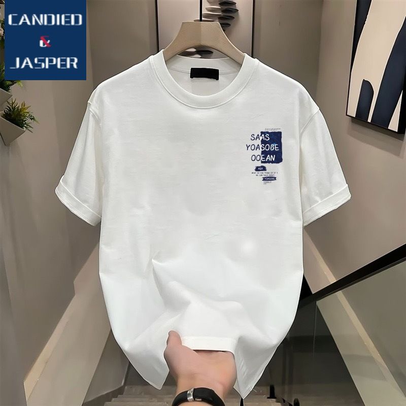 C&J Pure Creative Printed Cotton Short 2024 New Summer Black Rundhals-Halbarm-T-Shirt für Herrenbekleidung