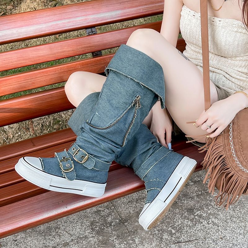 2025 Fall/Winter New Women's Chunky-Soled High-Top Canvas Sneakers Stylish Versatile Casual Shoes