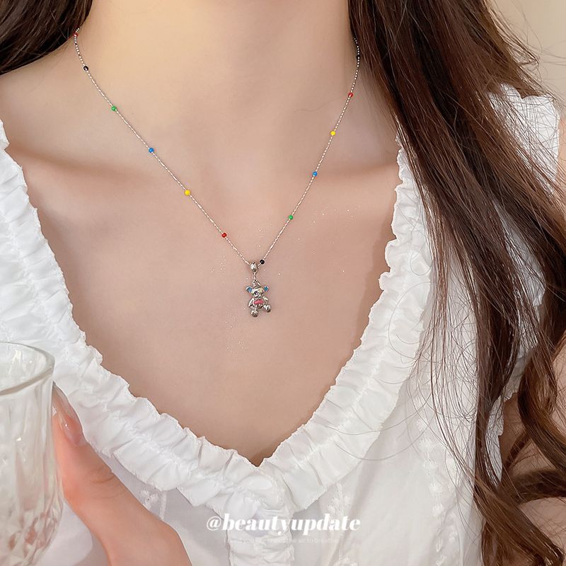 Cartoo Niedlich Öl Drippig Bär Pedat Fashio Nischendesign Schlüsselbein Chai Licht Luxus High-ed Sese Halskette Für