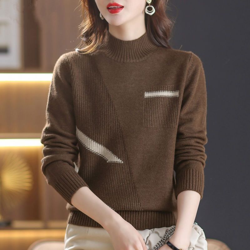 【 Cashmere Family 】 Half high neck sweater short style, middle-aged mother loose wool base sweater, women's knitted sweater inner layer