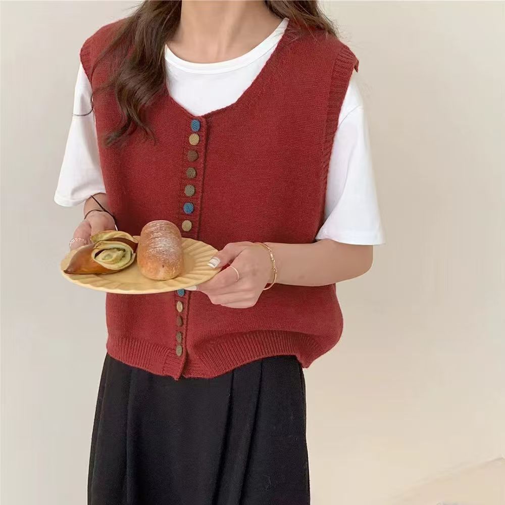 【 Cashmere Family 】 Wool Knitted Vest Cardigan Sleeveless Loose Sweater Versatile Vest Shoulder Top Women's Autumn