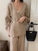 Casual Style Lace-up Strickanzug Frauen Herbst Winter Lose Pullover Mantel Hohe Taille Hose Zweiteiliges Set Weiblich 1115