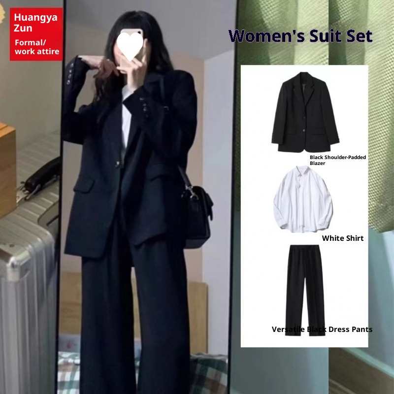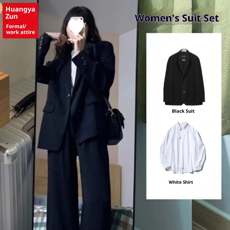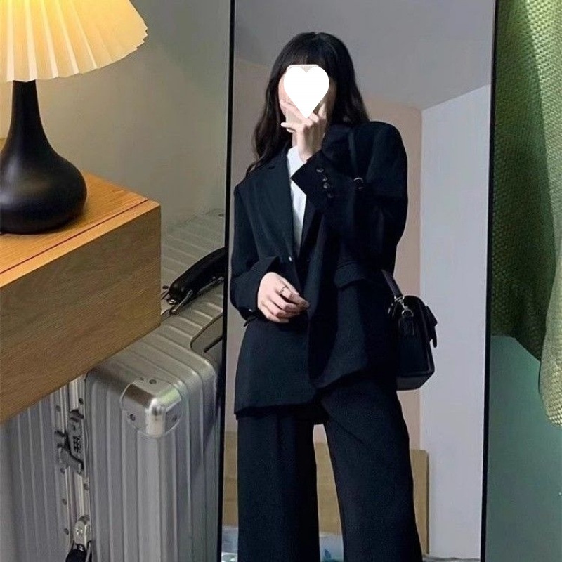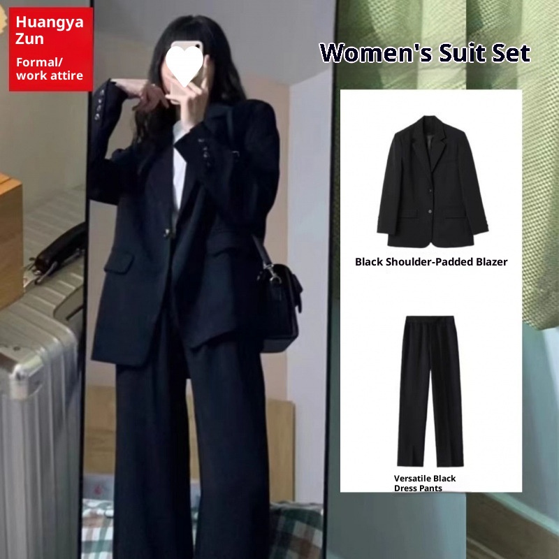 Black Suit Set for Women 2024 Spring and Autumn New Fashion Casual Professional Formal Suit for College Students Interview