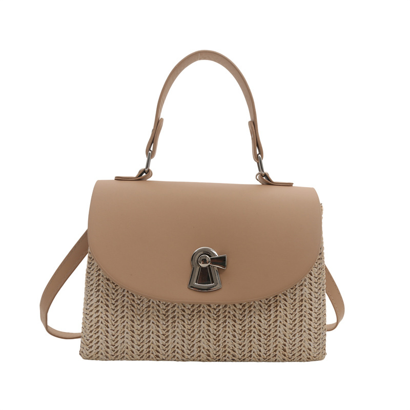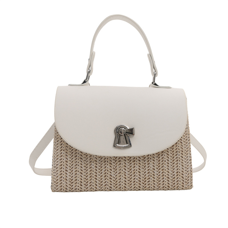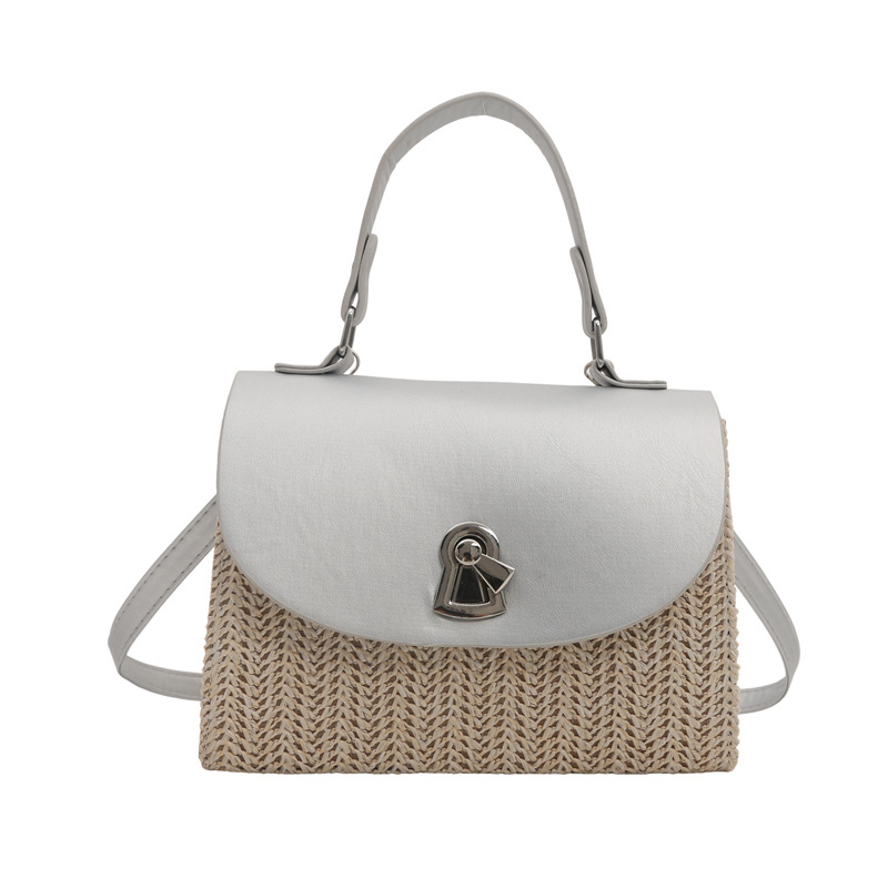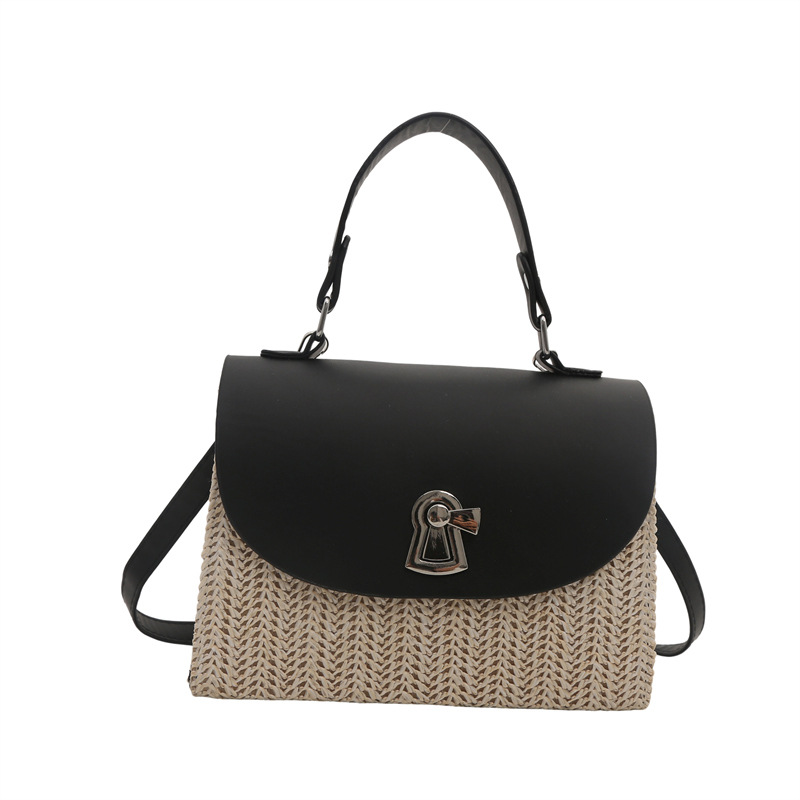 Color blocking woven hand-held small square bag for women 2024 new summer Korean version fashionable lock grass woven bag casual diagonal cross bag