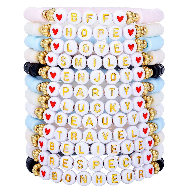 Farbbuchstaben-Armband aus weicher Keramik, mehrschichtiges gestapeltes Armband, Kombination aus Kinderarmband, Schmuck