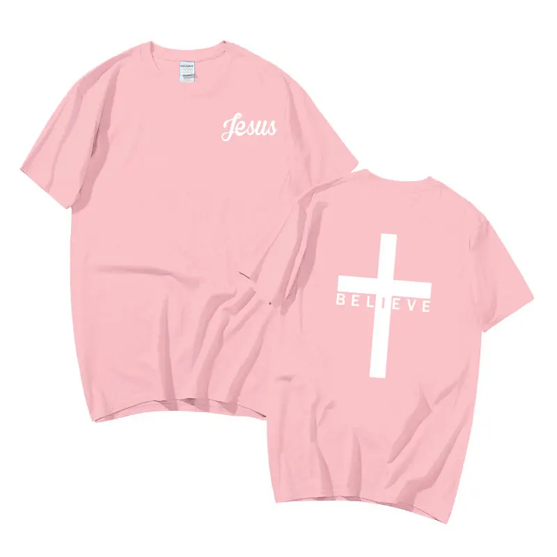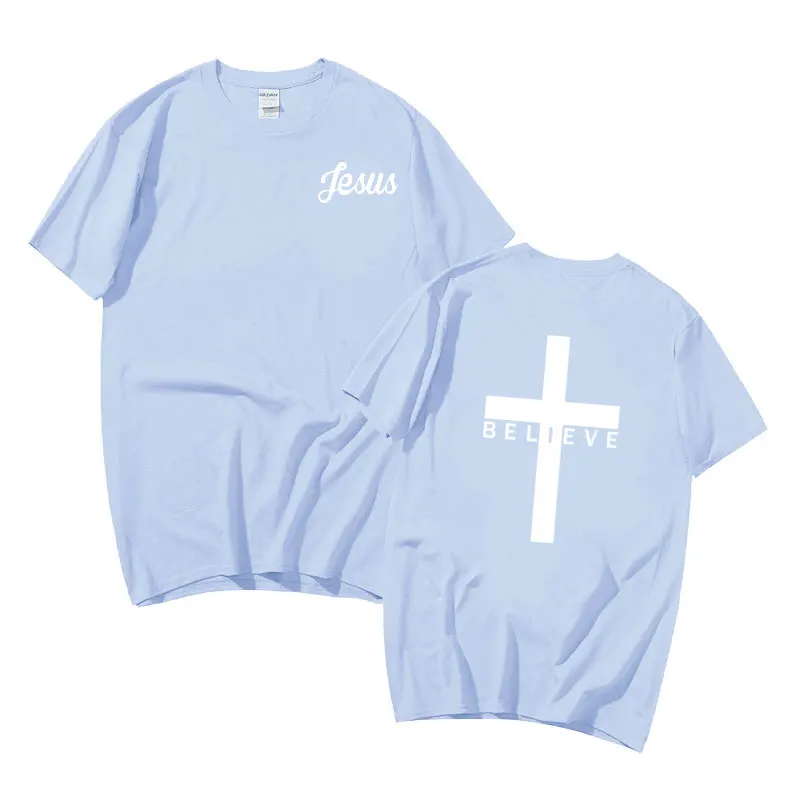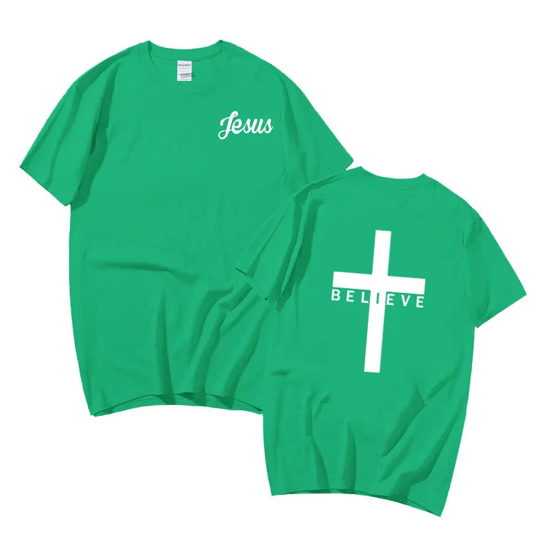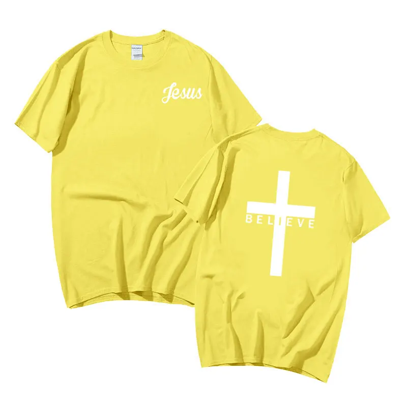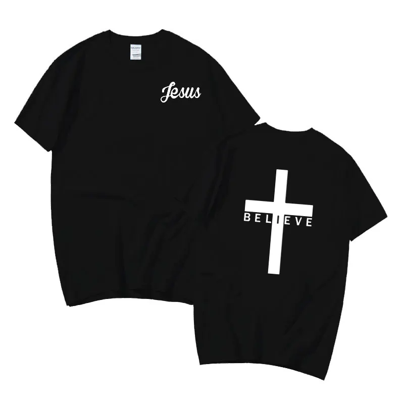 Baumwoll-Kreuz-Jesus-bedrucktes, lockeres, mehrfarbiges, kurzärmeliges, lässiges Herren- und Damen-T-Shirt