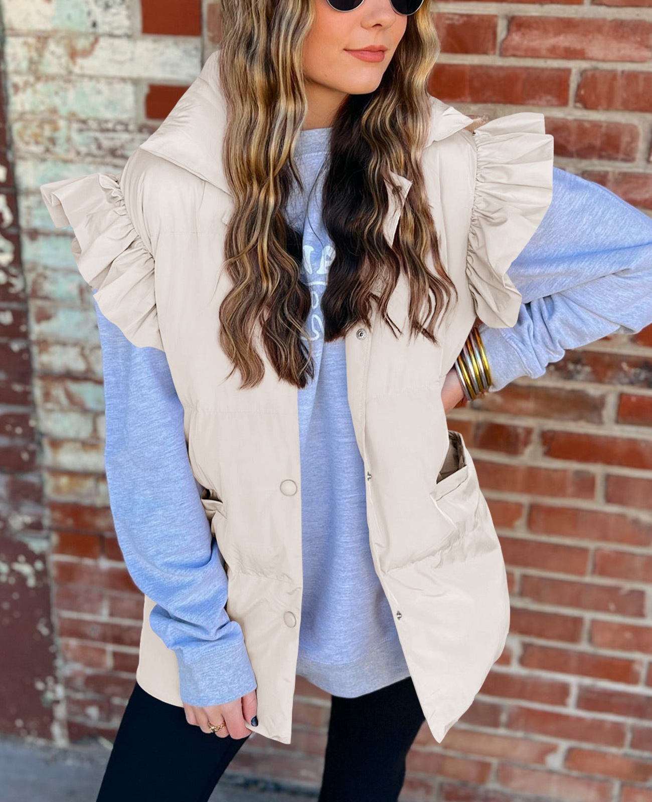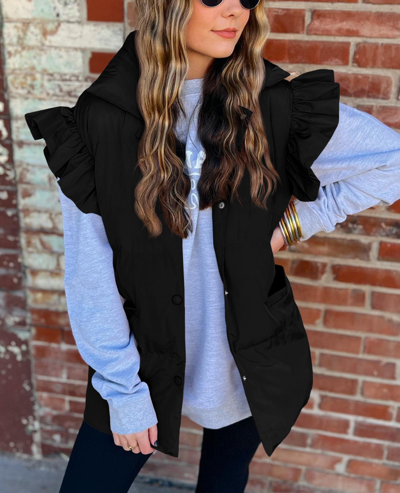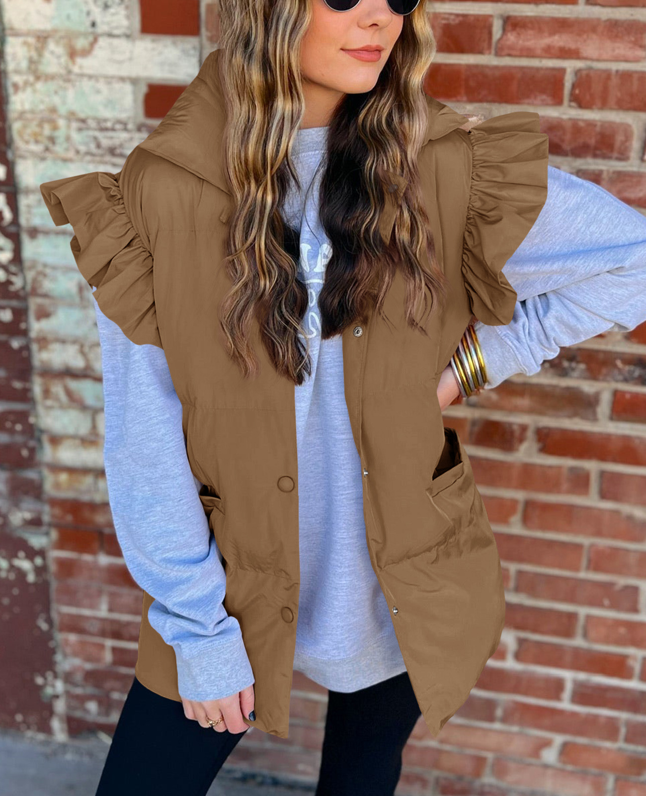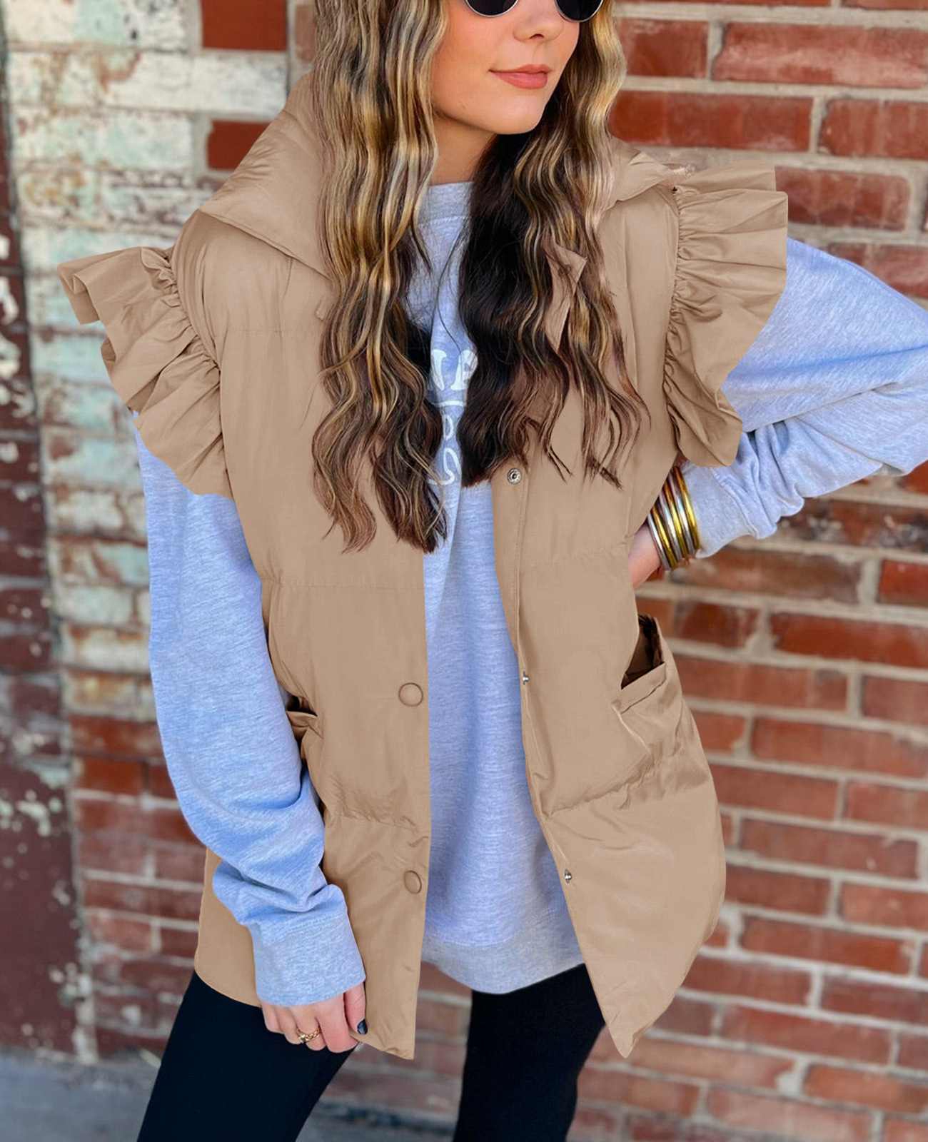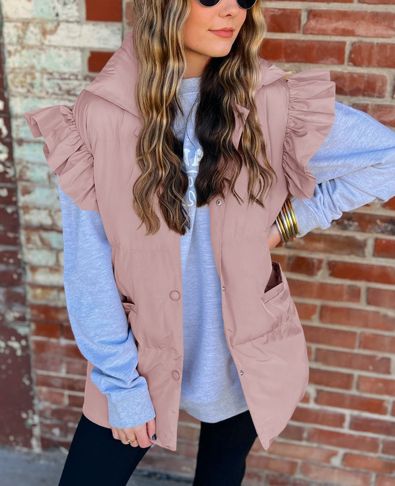 Grenzüberschreitende europäische und amerikanische Herbst- und Winterneuheiten mit lockerer Tasche und Baumwollpolsterung, fliegende Ärmel, elegante Weste, Stehkragen, Mode, Einreiher