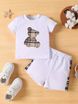 Cross Border INS Sommeranzug für Säuglinge und Kleinkinder im Bären-Print mit kurzärmeligem Oberteil und karierten Shorts