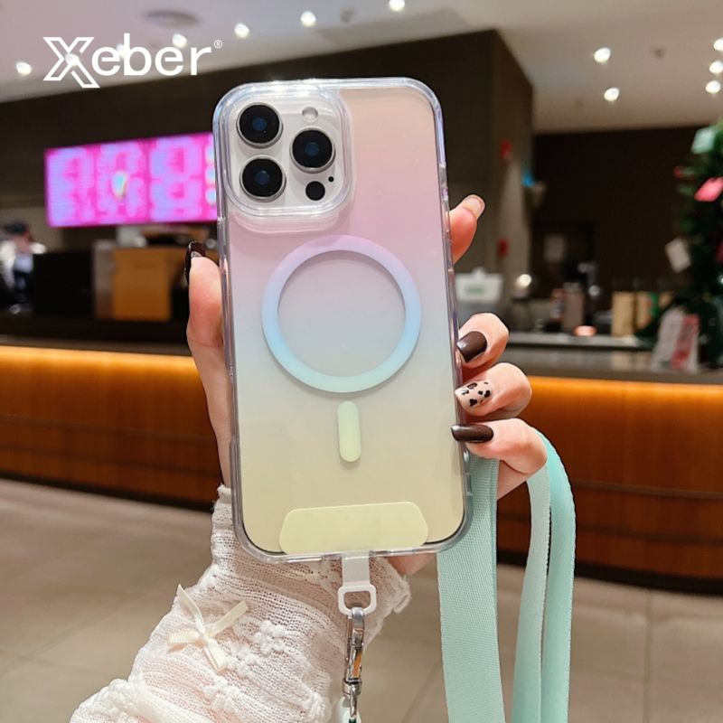 Crossbody Halskette Lanyard Gradient Rainbow Laser Magnethülle für iPhone 16 15 14 Plus 13 12 11 Pro Max Cover