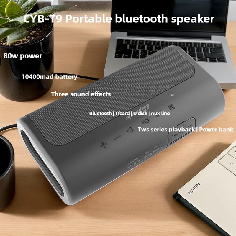 CYB-T9 bass Bluetooth speaker brings you a shocking listening experience with its powerful 80W power and three-speaker panoramic sound. Whether it is an outdoor party or an indoor leisure, this speaker can satisfy your ultimate pursuit of sound quality.