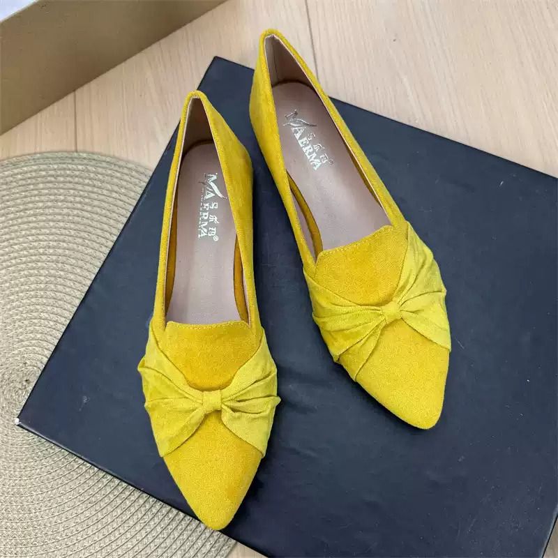 These exquisite pointed - toe flats are crafted from premium suede, delivering a soft and cozy touch. The distinctive knot detail on the vamp adds a touch of elegance and uniqueness, making them stand out.