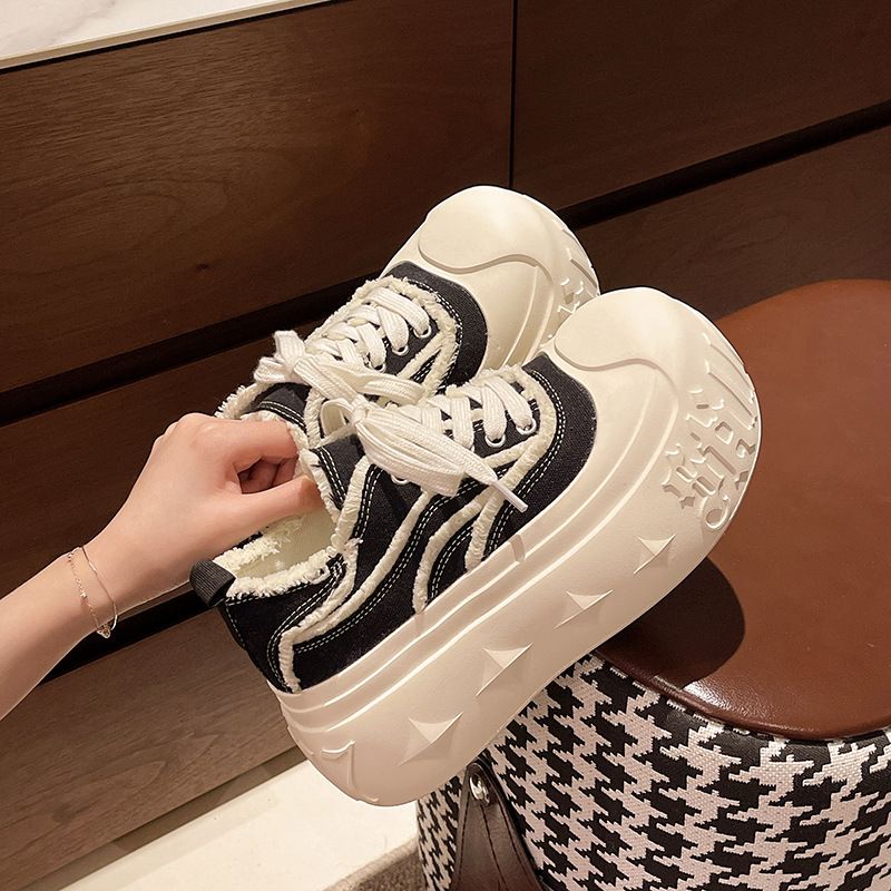 Damen Canvas Stiefel Blockabsatz Dicke Sohle Vielseitige Freizeitschuhe 2025 Herbst/Winter Neu