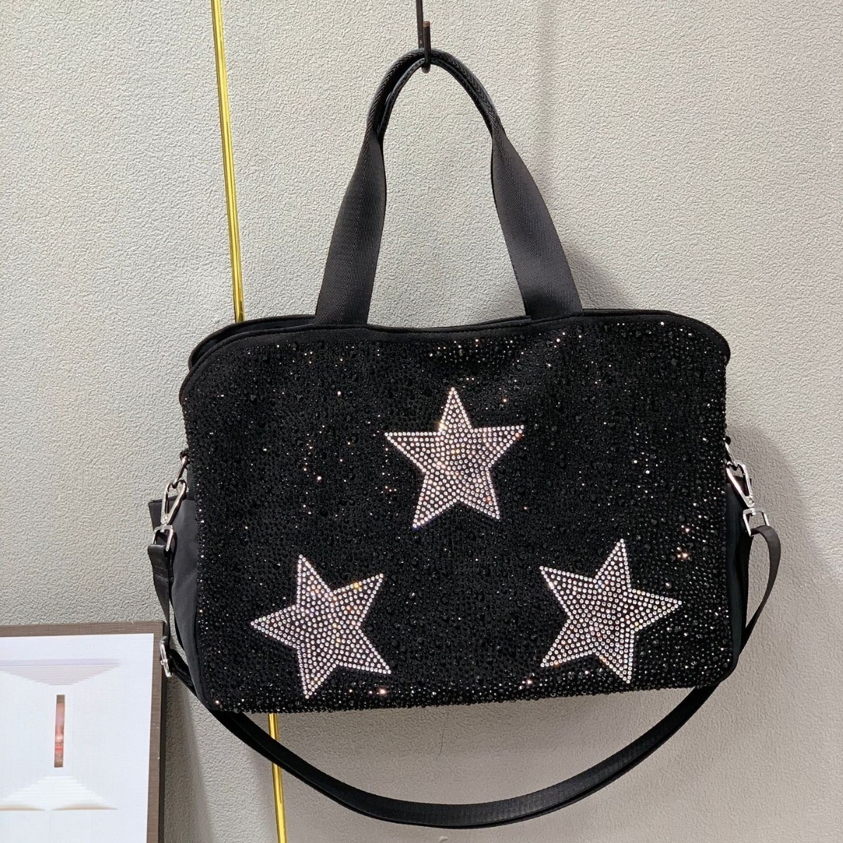 25 New Trendy Fashion Diamond-Studded Large Capacity Square Bag Hot Stamped Handbag Large Pentagram Shoulder Crossbody Bag