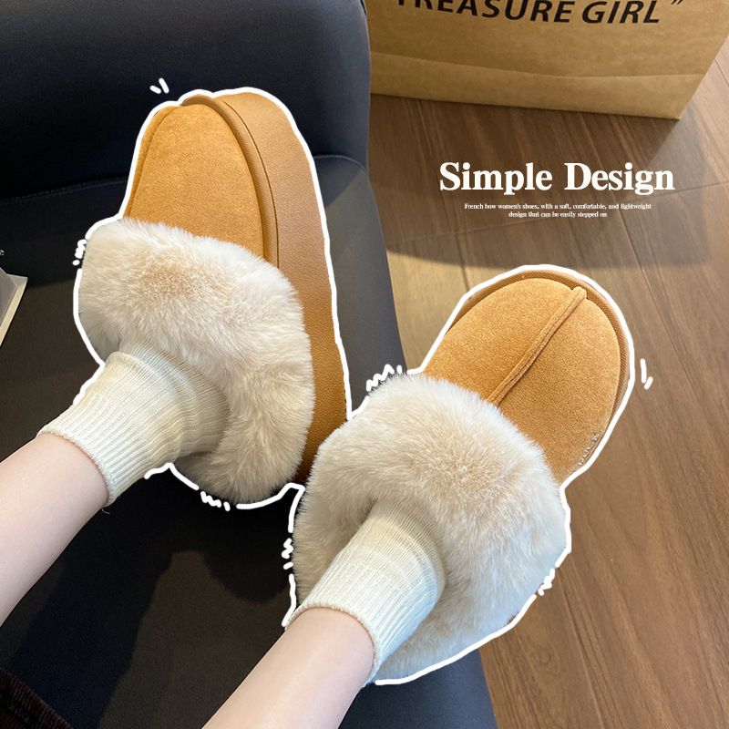 Women's Thick-Soled Suede Cotton Slippers, Internet Celebrity Style, Forest-Style Furry Slippers, Winter Warm Indoor Home Slippers, Outdoor Wear, Fleece-Lined and Thickened