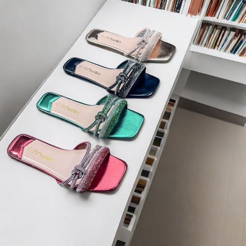 Damen Hausschuhe Damen Ballerinas Flache Slide Sandalen Für Damen Sommer Outdoor Wear High End Strass Stilvolle Trendy Vielseitige Mode Hausschuhe