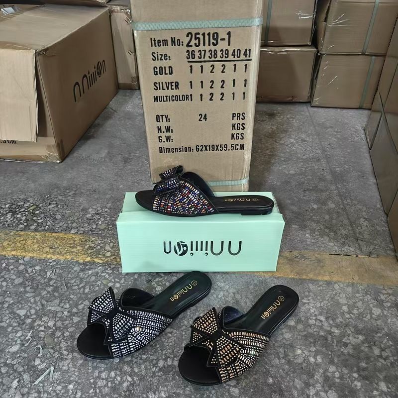 Damen-Hausschuhe Damen-Ballerinas Neue flache Slide-Sandalen für Damen mit Schleife und Strasssteinen Stilvolle Hausschuhe