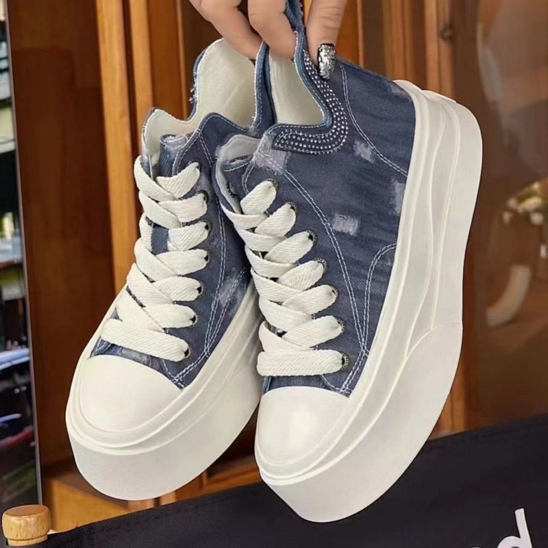 Damen High Top Canvas Schuhe 2025 Neue Herbst Dicker Boden Erhöhte Turnschuhe
