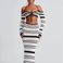 Damen Kleidungsset Sommer Gestreift Langarm Neckholder Top Rock Zweiteiliges Set