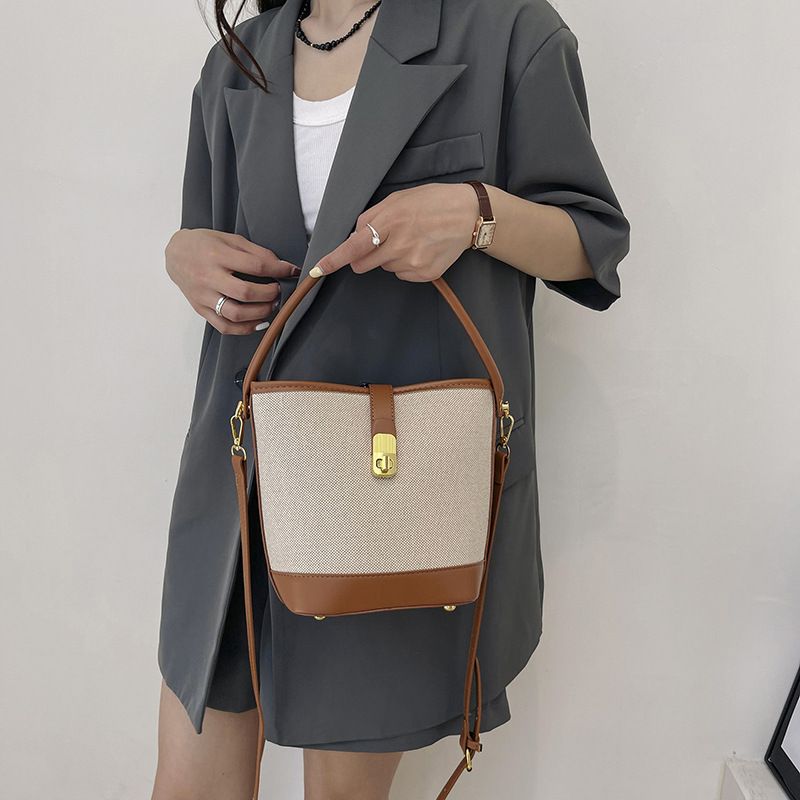 Damen Neue Mode Trendy Handtasche Eimer Nischendesign Farbblock Patchwork Schulter Umhängetasche
