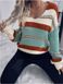 Damen-Pullover mit klassischem V-Ausschnitt und Kontraststreifen, lässig, lockerer Strickpullover, bequemes Langarm-Oberteil