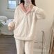 Damen-Schlafanzug aus Korallenfleece für Herbst und Winter. V-Ausschnitt, langärmlige Hose aus dickem Fleece, hält warm und kann draußen als Hausanzug getragen werden.