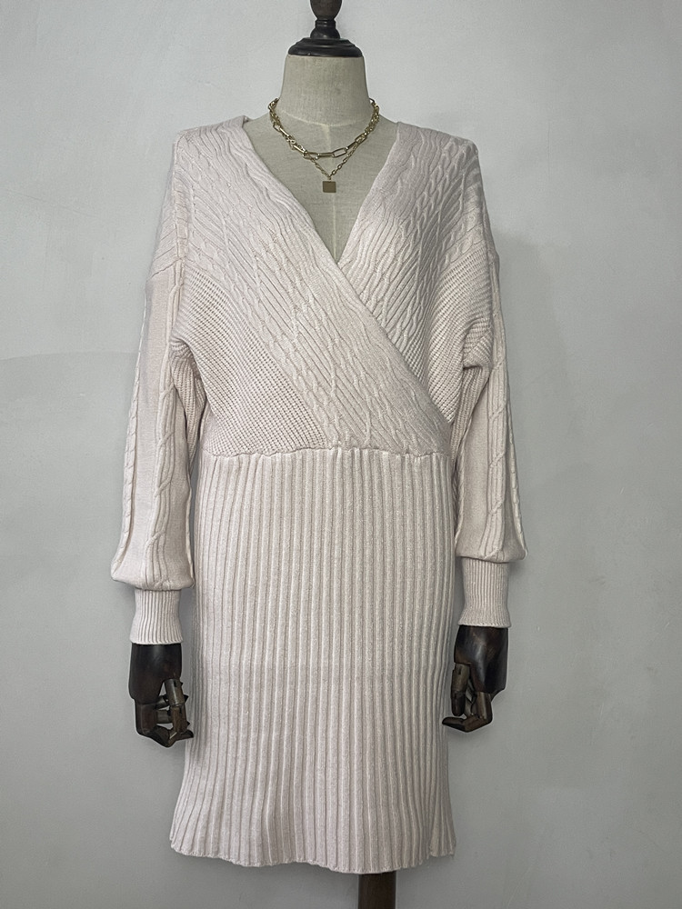 Damen Strickpullover Twist Mittellanger Rock Pullover