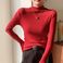 Damen-Thermooberteil mit schmaler Passform und halbem Rollkragen – weiches, elastisches Polyester-Unterhemd für den Winter (Rot, Schwarz, Weiß, Beige, Senfgelb, Kaffeebraun)