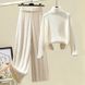 ✔ On-Trend Silhouette: Relaxed sweater + flowy wide-leg pants.