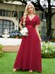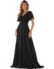 Damenbekleidung, handgefaltet, groß, schwingend, doppelter V-Ausschnitt, Trompetenärmel, Chiffon, Bankett, Brautjungfer, Übergröße, Abendkleid