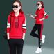 Damenbekleidung Kapuzenpullover-Anzug für Damen, farblich passende Buchstaben, trendiger, lässiger, lockerer, langärmeliger Sweatshirt-Anzug, zweiteiliger Anzug
