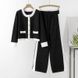 Damenbekleidung lässiger kleiner farblich passender Strickanzug Strickjacke Jacke geteilte Hose mit weitem Bein zweiteiliger Anzug