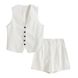 Damenbekleidung lässiger Westeanzug Leinenmischung lockere Weste + Shorts Anzug