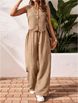 Damenbekleidung Leinen Sommer Casual Pendeln Vorderknopf Weste und Hose Set V-Ausschnitt Weste