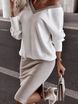 Damenbekleidung, modische Damenbekleidung, lässiger, lockerer Pulloveranzug mit V-Ausschnitt, enger Rock und langärmliges Oberteil, zweiteiliger Anzug