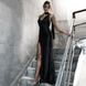 Damenbekleidung Neue Mode Sexy Deep V Neckholder Rückenfreies Band Schlitzkleid