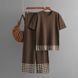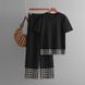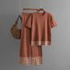 Damenbekleidung neues schlichtes, modisches Rundhals-Set in Volltonfarbe mit kurzärmeligem Oberteil und Hose mit Kontrastkante, zweiteiliges Strickset