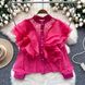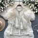 Damenbekleidung Nische Leichtes Luxus Dreidimensionales Rüschennähte Rundhalsausschnitt Perlen Einreihiges Vielseitiges Crop Top aus Spitze