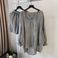 Damenbekleidung Retro-Hemd aus Baumwolle und Leinen, lockeres Design, sommerliches graues Hemd, elastische Taille, kurzer zweiteiliger Anzug