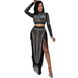 Damenbekleidung Sexy Nachtclub Hot Diamond Mesh Durchsichtiger Langarm Schlitz Langer Rock Zweiteiliges Set