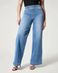 Damenhose mit hoher Taille und weitem Bein aus gewaschenem Stretch-Denim – bequeme Jeans mit mittlerer Leibhöhe und elastischem Bund für die Freizeit