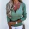 Damenmode Einfarbig Langarm Pullover Schlank Button-Down T-Shirt Top