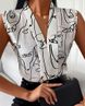 Damenmode Lässiges bedrucktes Oberteil mit V-Ausschnitt