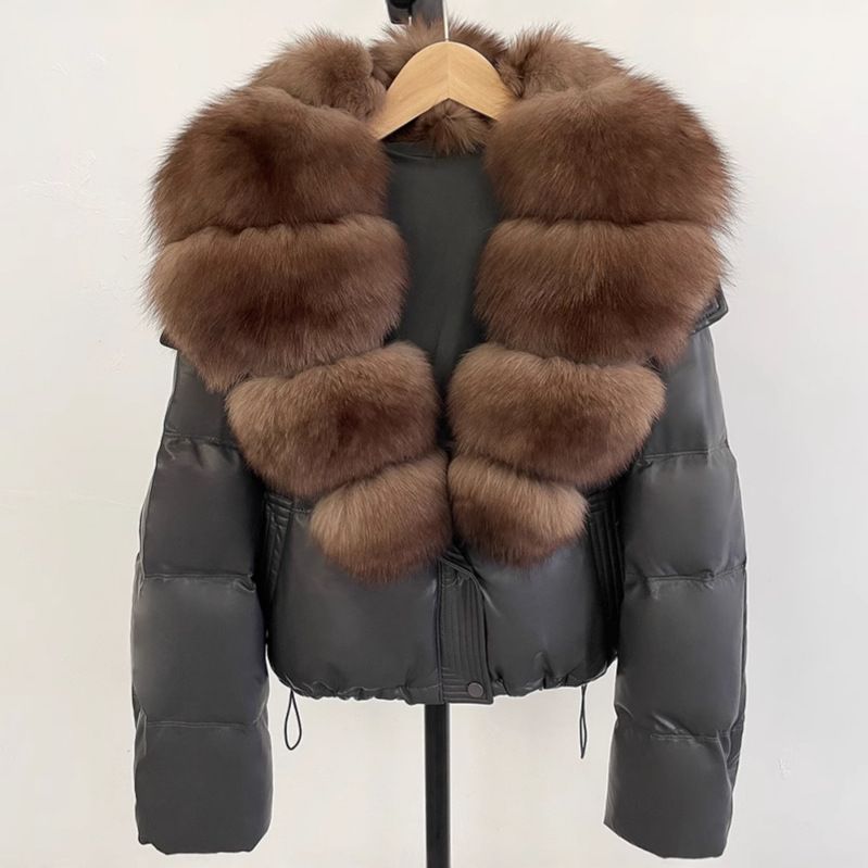 Luxury Meets Warmth​​ Step into winter with confidence in this ​​elegant fox fur-trimmed puffer jacket​​. Designed for both style and comfort, its ​​81-85% white duck down filling​​ ensures ​​lightweight warmth​​, while the ​​detachable fox fur hood​​ adds a touch of sophistication. ​​Key Features​​ ✔ ​​Premium Fox Fur Hood​​ – Soft, voluminous, and detachable for versatile styling ✔ ​​High-Quality Down Filling​​ – 81-85% white duck down for superior insulation ✔ ​​Oversized Korean Fit​​ – Relaxed silhouette for effortless layering ✔ ​​Short-Length Design​​ – Flattering cut to elongate your legs ✔ ​​Multiple Color Options​​ – Black, wine red, grey, khaki, and green to match any outfit ​​Versatile & Fashion-Forward​​ Whether you're heading to work, meeting friends, or exploring the city, this jacket keeps you cozy while making a statement. The ​​zipper closure and ribbed cuffs​​ ensure wind resistance, while the ​​oversized hood​​ adds a touch of drama. ​​Thoughtful Details for Everyday Wear​​ • ​​Breathable polyester shell​​ – Durable yet lightweight • ​​Adjustable drawstring hem​​ – Customizable fit • ​​Two side pockets​​ – Convenient for essentials • ​​Machine washable​​ – Easy care for busy lifestyles ​​A Must-Have for Cold Days​​ Upgrade your winter look with this ​​trendy yet functional​​ puffer jacket. Perfect for layering over sweaters or pairing with jeans for a ​​casual-chic vibe​​.