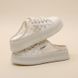 Damenoberbekleidung mit Mesh-Zehen und halben Hausschuhen liegt im Sommer 2023 im Trend, neue dicke Sohlen, keine Absätze und weiße Schuhe für Faule