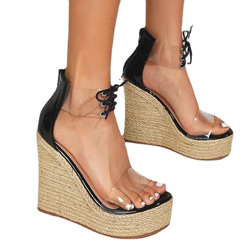 Damenschuhe Neue Sandalen im modischen Stil für Damen zum Tragen draußen, Seil-Keilabsatz für Damen, große Größen