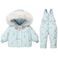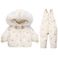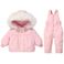 Daunenjacken-Set für Kinder – 50 % weiße Entendaunen, abnehmbare Kapuze und Druckknopfverschluss im Schritt (80–100 cm, Weiß/Rosa/Hellgrün)