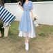 Design sense fake two pieces of artistic temperament V-neck shirt dress women's summer French gentle waist long skirt