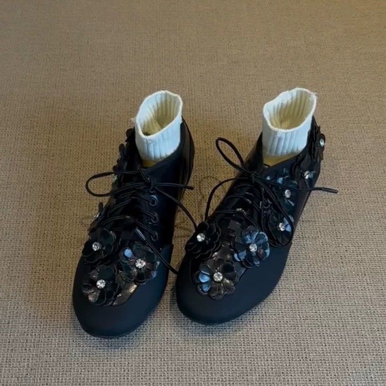 New Product ~ Niche Floral Lace-up German Training Shoes for Women 2025 Spring Summer New Style Sports Casual Ballet Style Single Shoes